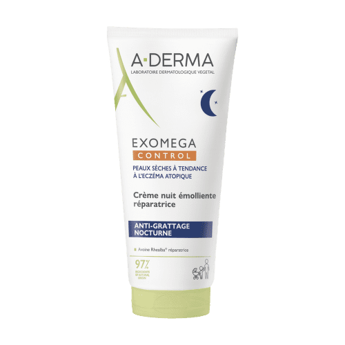 Exomega Control Regeneračný emolienčný nočný krém je prvý emolienčný prípravok pôsobiaci na nočné škrabanie. Tento vysoko účinný krém je bez parfumácie a má 97 % zložiek prírodného pôvodu. Obsahuje nové účinné duo prírodných aktívnych látok: OVOS RHEALBA® a HELICHRYSUM (SMIL). Táto upokojujúca kombinácia pôsobí na molekuly spôsobujúce škrabanie, vďaka čomu sa v noci budete budiť 2x menej*. Má príjemnú krémovú textúru a pôsobí počas celej noci. Regeneračná sila bio ovsa Rhealba® prispieva noc čo noc k obnove kožnej bariéry.