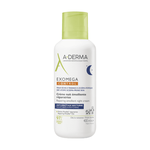Exomega Control Regeneračný emolienčný nočný krém je prvý emolienčný prípravok pôsobiaci na nočné škrabanie. Tento vysoko účinný krém je bez parfumácie a má 97 % zložiek prírodného pôvodu. Obsahuje nové účinné duo prírodných aktívnych látok: OVOS RHEALBA® a HELICHRYSUM (SMIL). Táto upokojujúca kombinácia pôsobí na molekuly spôsobujúce škrabanie, vďaka čomu sa v noci budete budiť 2x menej*. Má príjemnú krémovú textúru a pôsobí v priebehu celej noci. Regeneračná sila bio ovsa Rhealba® prispieva noc čo noc k obnove kožnej bariéry.