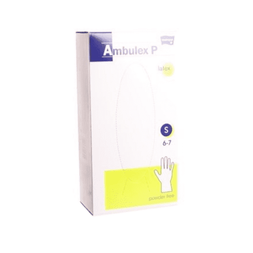 AMBULEX P rukavice latex potiahnuté polymérom veľkosť S nesterilné nepúdrované 100 ks