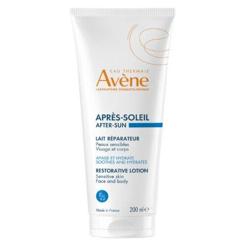 Reparačné mlieko po opaľování. Vhodné na tvár a telo, na citlivú pokožku. Je vhodné pre celú rodinu, dospelých aj deti od 2 rokov. Zloženie bohaté na Termálnu vodu Avene, s antioxidantami a jojóbovýmolejom. jemnej vône.
