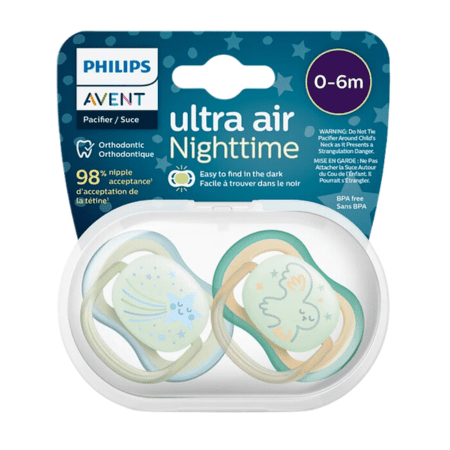 Cumlík Philips Avent ultra air má mimoriadne veľké otvory na vzduch, ktoré udržia suchú pokožku. Má tlačidlo svietiace v tme, takže ho nájdete aj pri zhasnutom svetle. K dispozícii v rôznych farbách a vzoroch.