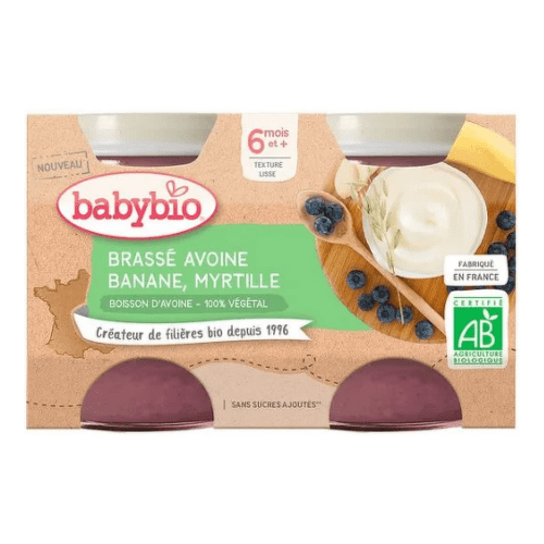 BABYBIO Brassé z ovseného mlieka banán čučoriedka desiata od ukonč. 6. mesiaca 2 x 130 g