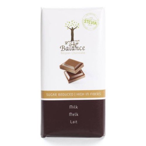 Belgická spoločnosť Klingele chocolade sa špecializuje na výrobu vysoko kvalitnej čokolády bez pridaného cukru. Pod značkou Balance uvádza na trh radu čokolád bez umelých sladidiel a konzervačných látok, používa sladidlá glykozidy steviolu a maltitol. Čokoláda bez cukru • iba kakaové maslo bez hydrogénovaných tukov • kakaové bôby z najlepších plantáží • čokolády s vysokým obsahom kakaa podľa originálnych receptúr Obsah kakaovej sušiny min. 38%, mliečnej sušiny min. 25% Zloženie: kakaové maslo, vláknina (inulín), sušené plnotučné mlieko, kakaová hmota, sušené odstredené mlieko, maltitol (