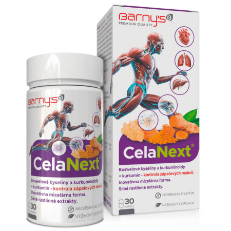 Barny´s® CelaNext® je kombinovaný rastlinný a vitamínový výživový doplnok obsahujúci značkový komplex rastlinných extraktov v micelárnej forme z kadidlovníka pílovitého (Boswellia serrata) a kurkumy dlhej (Curcuma longa) s obsahom kyseliny boswelovej a kurkuminoidov (vrátane kurkumínu). Zmes je obohatená o vitamín D3, ktorý prispieva k udržaniu zdravých kostí a k udržaniu správne ho fungovania svalov (EFSA ID: 150, 155). Jedinečná micelárna technológia umožňuje ľahší vstup a prenos aktívnych látok v organizme, aby ich ten dokázal čo najúčinnejšie využiť. Šetrná extrakcia a separácia aktívnych látok umožňuje získanie vysokej koncentrácie kurkuminoidov (vrátane kurkumínu) a boswelových kyselín. Kurkumín ako jedna z hlavných aktívnych látok obsiahnutých v extrakte získanej z podzemku kurkumy dlhej, prispieva ku kontrole zápalových reakcií (EFSA ID: 2030).