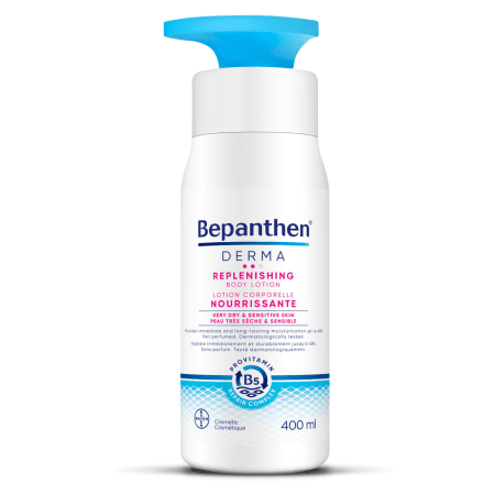 Bepanthen DERMA hĺbkovo vyživujúce telové mlieko poskytuje rýchlu úľavu, dlhotrvajúcu starostlivosť a zanecháva pokožku jemnú a hladkú na dotyk. Zložky obnovujúceho komplexu s provitamínom B5 vo výrobku Bepanthen DERMA pôsobia hĺbkovo hydratačne zvnútra na rôznych miestach pokožky:
