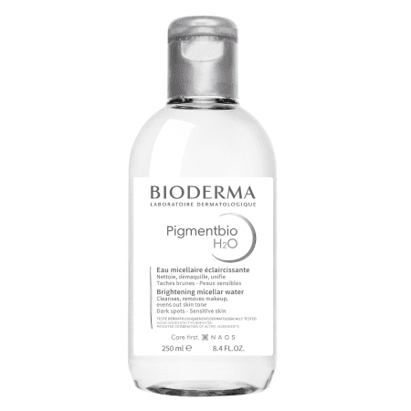 Micelárna voda Pigmentbio H2O je prispôsobené špeciálne pre potreby hyperpigmentovanej pokožky. Pomáha predchádzať vzniku tmavých škvŕn spôsobených nadmernou produkciou a hromadením melanínu, a optimalizuje následnú starostlivosť o pleť. Rozjasňuje tón pleti a poskytuje dlhotrvajúci pocit sviežosti.