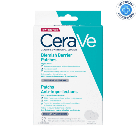 CERAVE náplasti na nedokonalosti s 3 esenciálnými ceramidmi a niacínamidom. Pomáhájú znižovat viditeľnosť akné a začervenanie*. Pomáhajú absorbovať prebytočný maz. Pomáhajú predchádzať stláčaniu vyrážok, čím znižujú riziko vzniku jaziev po akné. 22 hydrokoloidných neviditeľných náplastí so zúženými okrajmi pre bezpečné použitie. Vhodné pre citlivú pokožku.
