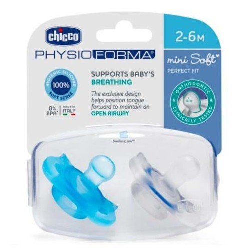 CHICCO Cumlík physio forma 2-6m celosilikónový chlapec 2 ks