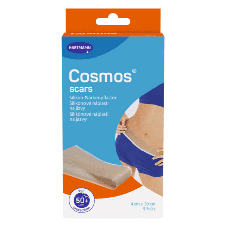 Silikónové náplasti na jazvy Cosmos s UV faktorom 50+ sú samolepiace náplasti, ktoré slúžia ako pomôcka pri liečbe hypertrofických čerstvých jaziev a na prevenciu nadmernej tvorby jaziev a keloidov u ľudí s pokožkou náchylnou na zjazvenie. Jednorazové aj opakované použitie, možno nosiť až 7 dní. Samolepiaci dizajn – jednoducho odstránite ochrannú fóliu a aplikujete priamo na kožu. V 2 veľkostiach, na nastrihanie na potrebnú veľkosť.