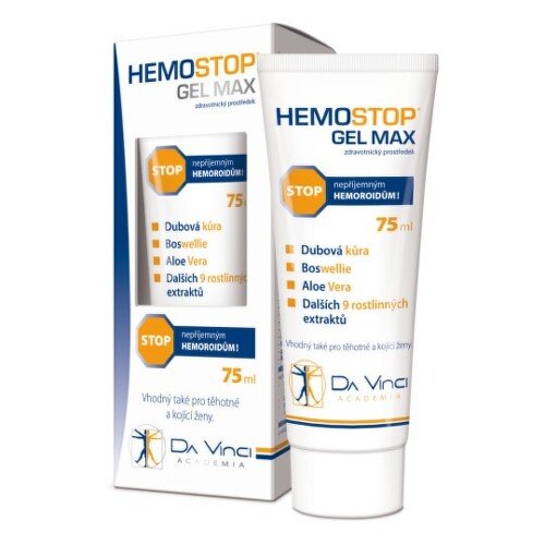 HemoStop Gél Max z prémiového radu Da Vinci Academia je zdravotnícka pomôcka pri problémoch s hemoroidmi. Ide o prípravok s obsahom 12 účinných látok: