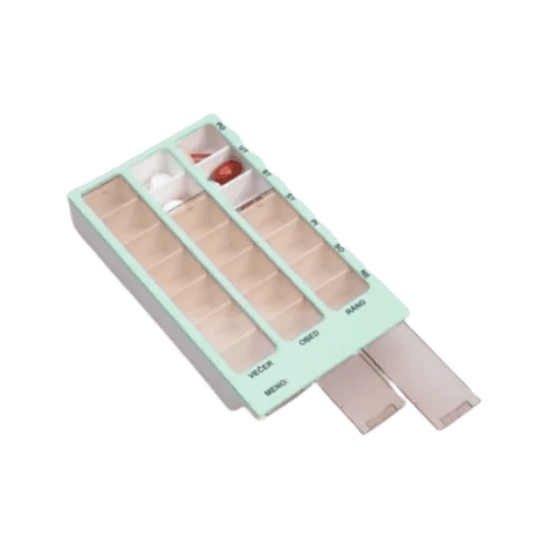 Dávkovače na lieky slúžia k prehľadnému a spoľahlivému dávkovaniu liekov a potravinových doplnkov doma i na cestách. Sú označené jednoduchými menovkami a symboly zobrazujúcimi dennú dobu. Jednotlivé typy dávkovačov sa líšia veľkosťou, tvarom, počtom častí v jednom dni a farebným prevedením. Niektoré dávkovače majú tiež hmatovo znakové odlíšenie pre zrakovo postihnutých.