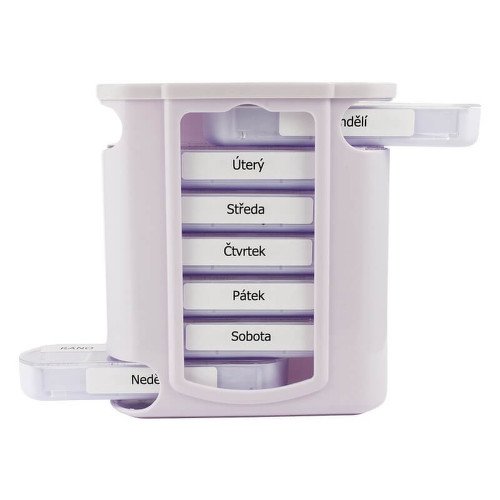Praktický organizátor na ukladanie tabletiek so samostatným puzdrom na každý deň v týždni. V každom puzdre sú štyri priehradky, vďaka ktorým je možné presne naplánovať dávkovanie lieku štyrikrát denne: ráno, popoludní, večer, v noci.