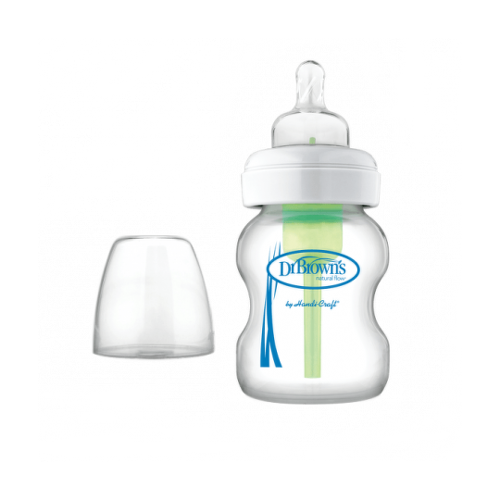DR.BROWN´S Dojčenská fľaša options+ 150 ml je sklenená dojčenská fľaša so širokým hrdlom, vhodná pre deti od narodenia.Použitie s ventilom aj bez ventilu. Redukuje výskyt koliky, grganie, zvracanie a nadúvanie vďaka zníženému negatívnemu tlaku a nižšiemu vznikaniu vzduchových bublín. Pomáha zachovávať vitamíny C, A, E vďaka preukázane nižšej oxidácii.