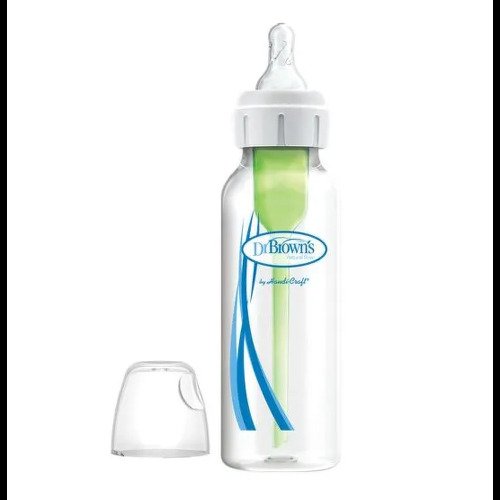Táto dojčenská fľaša, navrhnutá lekárom, Vám prináša unikátny patentovaný systém optimálneho prisávania vzduchu, ktorý výrazne znižuje výskyt bolesti brucha, zvracania, odgrgávania a nafukovania. Vnútorný prietokový ventil zabraňuje tvorbe vzduchových bublín v materskom mlieku alebo v inej tekutine. Nedochádza k tvorbe vákua, čo napomáha eliminovať nepríjemný vnútroušný tlak. Svojím tvarom veľmi dobre imituje dojčenie a je ideálny na podávanie materského mlieka alebo inej tekutiny. Vyberte si správny cumlík. Dr.Brown’s cumlíky sú z veľmi mäkkého, vysokokvalitného silikónu. Jednotlivé druhy sa odlišujú v prietoku.
