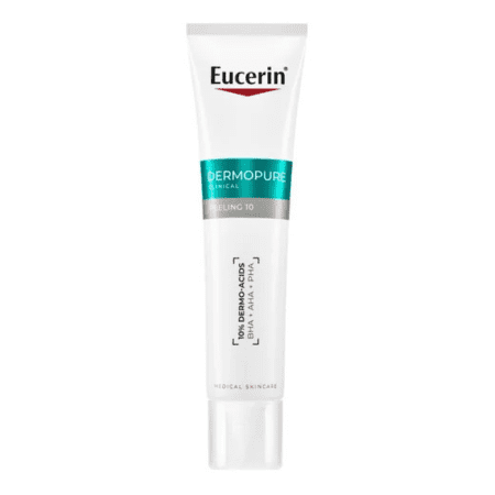 Eucerin DermoPure CLINICAL 10% Peeling je koncentrovaný nočný peeling, vhodný na pretrvávajúce nedokonalosti a na zjemnenie textúry pleti. Postupne zanecháva pleť čistejšiu a hladšiu. Bez parfumácie. Obsahuje účinnú kombináciu 10 % koncentrovaných exfoliačných aktívnych zložiek – kyseliny salicylovej (BHA), kyseliny glykolovej (AHA) a glukonolaktonu (PHA), ktoré pleť exfoliujú a zároveň hydratujú.