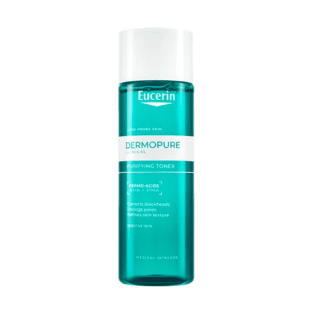Eucerin DermoPure CLINICAL Čistiace tonikum je exfoliačné tonikum vhodné pre mastnú pleť so sklonom k akné, ktoré obsahuje kombináciu kyseliny glykolovej (AHA) a glukonolaktonu (PHA), vďaka čomu redukuje nedokonalosti a obnovuje pleť bez prílišného vysušovania. Bez parfumácie.