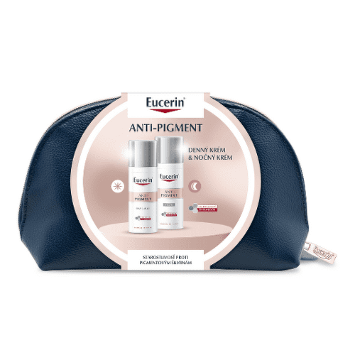 Darčeková kazeta obsahuje denný krém a nočný krém anti-pigment v kozmetickej taštičke.
