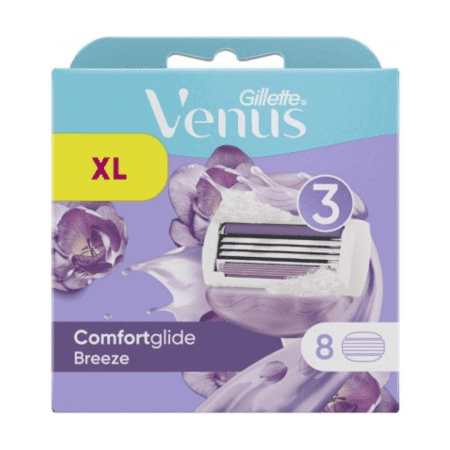 NÁHRADNÉ HOLIACE HLAVICE: 8 náhradných dámskych holiacich hlavíc Comfortglide Breeze s 3 vsadenými čepieľkami pre hladké, dôkladné oholenie, ktoré pretrvá ; HLADKÝ SKLZ PO POKOŽKE: gélové prúžky všetkých náhradných holiacich hlavíc sa aktivujú vodou, čím zabezpečia hladký sklz po pokožke pri každom ťahu ; TVAR, KTORÝ SA PRISPÔSOBÍ: výkyvná holiaca hlavica, ktorá sa prispôsobí kontúram tela. Už nemusíte zložito vykrúcať holiaci strojček ; OCHRANA POKOŽKY: gélové prúžky holiaceho strojčeka uvoľňujú bohatú penu z telového mlieka s fréziou, ktorá chráni pokožku pred drobnými poraneniami a podráždením ; Všetky náhradné hlavice Gillette Venus sú kompatibilné so všetkými rukoväťami holiacich strojčekov Venus (okrem modelu Gillette Simply Venus a Gillette Venus pre pubické ochlpenie a pokožku)