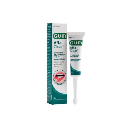 GUM AftaClear gél, univerzálna starostlivosť na okamžité utíšenie bolesti a rýchle hojenie vriedkov v ústach (áft), ortodontických odrenín, podráždených miest od zubných náhrad, drobných popálenín či iných slizničných defektov.