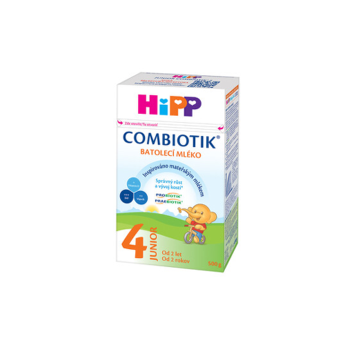 HiPP 4 Junior Combiotik®, mliečna batoľacia výživa, je vhodná len pre výživu detí od 2 rokov a mala by tvoriť len časť zmiešanej stravy. Obsahuje: