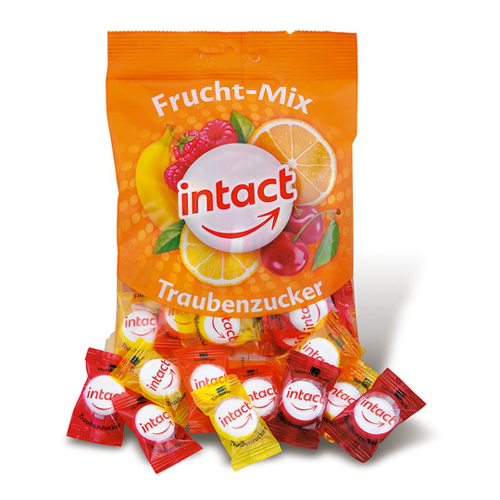 Zmes cukríkov s hroznovým cukrom s príchuťou  citrón, pomaranč, malina, banán a višňa. Ovocný mix.