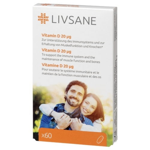 LIVSANE Vitamín D obsahuje 20 mikrogramov (), t.j. 400% dennej potreby vitamínu D. Neobsahuje lepok a laktózu. Vhodné pre vegetariánov.