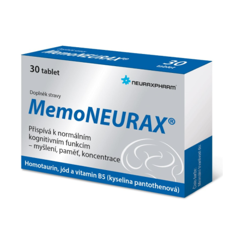 MemoNEURAX® obsahuje jedinečnú kombináciu homotaurínu, kyseliny pantoténovej (B5) a jódu. Hlavnou  zložkou je látka  homotaurín, derivát aminokyselín, ktorý sa nachádza v niektorých druhoch morských rias.