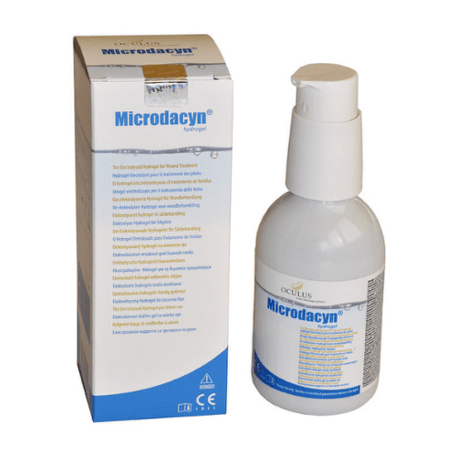 Microdacyn® hydrogél je superoxidovaný produkt vyrobený pomocou elektrolýzy ultračistej vody a NaCl. Microdacyn® denaturuje bunkovú stenu jednobunkových organizmov, čo spôsobuje, že táto stena presakuje a rozpadá sa. Štúdie tiež ukazujú, že má protizápalový a protialergický účinok, čo prispieva k rýchlejšiemu hojeniu rany. Vlastnosti: