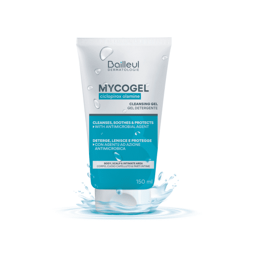 Mycogel čistiaci gél je špeciálne vyvinutý na citlivú pokožku so sklonom k podráždeniu a mykotickým prejavom. Je vhodný pre pokožku vlasov, tváre, tela a dokonca pre citlivú pokožku intímnych partií. Kyselina hyalurónová spolu s antimikrobiálnou zložkou ciclopirox olamínom a rastlinným glycerínom jemne a účinne čistí citlivú pokožku, upokojuje podráždenie a zmierňuje začervenanie. Je ideálny ako súčasť efektívnej liečby mykóz alebo ako ochrana pred vznikom mykóz.
