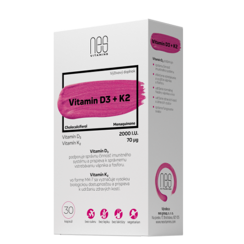 NESVITAMINS Vitamin D3 2000 I.U. + K2 70 µg 30 kapsúl