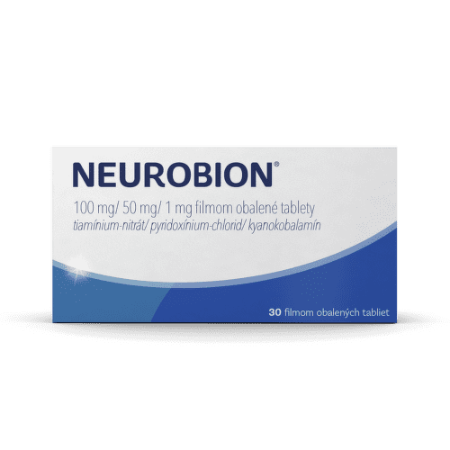 ⁸Kombinácia neurotropných vitamínov B1, B6 a B12 obsiahnutá v prípravku Neurobion prispieva k regenerácii nervových buniek a zmierneniu príznakov deficitu týchto vitamínov, ako je znížená citlivosť, mravčenie a brnenie.