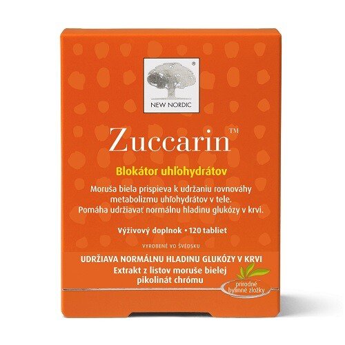 ZuccarinTM je tableta, ktorá napomáha pri znižovaní vstrebávania uhľohydrátov z cukru a škrobu a na reguláciu hladiny cukru v krvi. Listy moruše bielej sú tradične používané ako potravina a na prípravu čaju v Japonsku. Extrakt z listov moruše bielej prispieva k udržaniu rovnováhy metabolizmu uhľohydrátov v tele. Zuccarin je ďalej obohatený o pikolinát chrómu, ktorý pomáha udržiavať normálnu hladinu glukózy v krvi a podieľa sa na metabolizme tukov, uhľohydrátov a bielkovín.