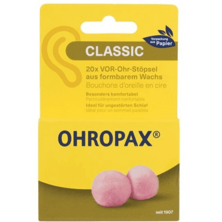 Ušné vložky vyrobené z mäkkého vosku, individuálne prispôsobiteľné vonkajšiemu zvukovodu.
