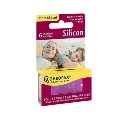 OHROPAX Silicon obsahuje medicínsky silikón. Prispôsobivý materiál je vhodný na ochranu sluchu. Zátka sa prispôsobí každému zvukovodu a spoľahlivo ochráni uši proti vniknutiu vody počas kúpania a plávania. Taktiež ochráni uši proti hluku a vetru.