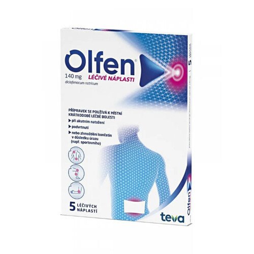 Pred použitím lieku si pozorne prečítajte písomnú informáciu pre používateľa a poraďte sa s lekárom alebo lekárnikom. Olfen 140 mg, liečivá náplasť je liek na kožné podanie. Obsahuje sodnú soľ diklofenaku.