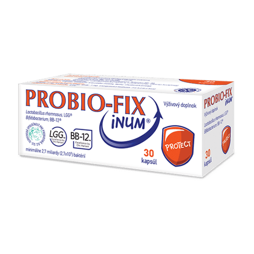 Výživový doplnok s obsahom baktérií mliečneho kvasenia Lactobacillus rhamnosus GG a Bifidobacterium animalis subsp. lactis.