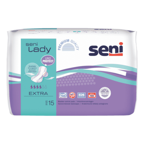 Absorpčné vložky pre inkontinentných pacientov. Určené najmä pre ženy. Neobsahujú latex. Rozmery vložky: 15 x 28 cm, savosť – 430 ml.