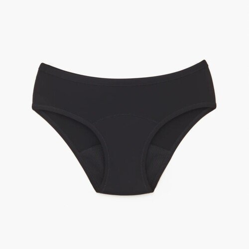 Menštruačné nohavičky klasického strihu pre strednú menštruáciu. Veľkosť XS. Farba: čierna.