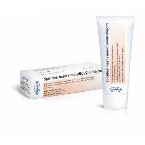 Vodou nezmývateľná Spiridea® masť s mandľovým olejom je určená na každodenné ošetrenie suchej až veľmi suchej a obzvlášť citlivej detskej kože. Zvláčňuje a intenzívne premasťuje. Je vhodná aj na atopickú, ekzematickú a psoriatickú kožu. Napomáha predchádzať vzniku a zväčšovaniu strií. Jej základom je viac než 100-ročná originálna receptúra s bohatým obsahom mandľového oleja, ktorý tvorí až 75 % prípravku. Výhodou mandľového oleja je, že ľahko preniká do rohovej vrstvy kože (stratum corneum). Obsahuje taktiež vysoký podiel prospešných nenasýtených mastných kyselín (kyselina olejová, kyselina linolová), ktoré sa významne podieľajú na jeho ošetrujúcom účinku. V kombinácii s dôsledne zvolenými surovinami a použitou technológiou je masť vynikajúco roztierateľná, optimálne sa vpíja do kože a nezanecháva ju citeľne mastnú. Masť je obohatená o vitamín E (tokoferol), ktorý bráni oxidačným procesom. Chráni kožu pred chladom.