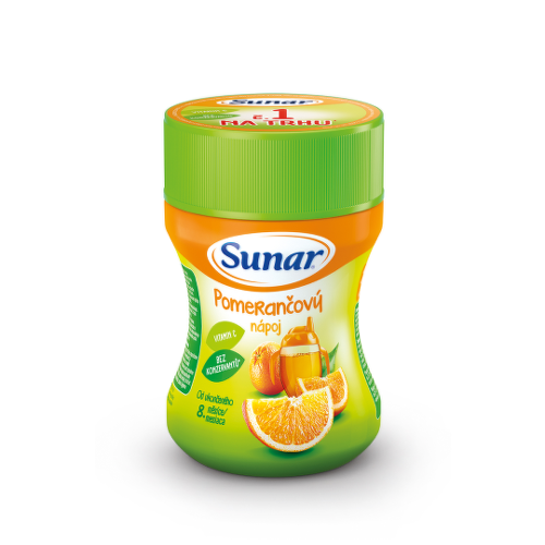 Potravina na osobité výživové účely pre dojčatá od ukončeného 8.mesiaca a malé deti. Rozpustný nápoj pomarančový v prášku, s vitamínom C, bez konzervantov. Obsah balenia 200 g = 4 l nápoja.