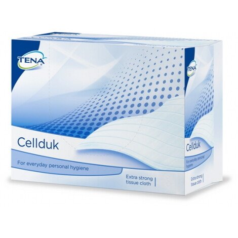 TENA Cellduk je jemná utierka z celulózy vhodná na očistu celého tela. Celulóza v kombinácií s podpornými nylónovými vláknami poskytujú vynikajúcu pevnosť i za mokra. Na jednorazové použitie. Túto mäkkú umývaciu látku podobnú uteráku možno používať s mydlom a vodou, umývacími krémami či olejmi.