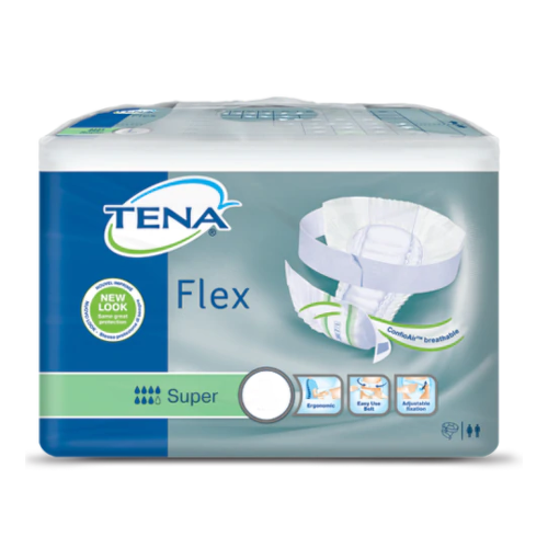 Nohavičky TENA Flex Super sú prispôsobivé inkontinenčné nohavičky s rýchloupevňovacím pásom navrhnuté tak, aby umožňovali jednoduchšiu a ergonomickejšiu výmenu produktu. Sú vhodné pre ľudí, ktorí sú mobilní, čiastočne mobilní alebo imobilní. Nohavičky TENA ProSkin Flex s technológiou FeelDry Advanced™ poskytujú výnimočnú ochranu tým, že rýchlo odvádzajú tekutinu z povrchu a zanechávajú pokožku suchú. Super absorpčné a rýchlo účinné jadro okamžite uzamkne moč pre pocit sucha, dokonca aj vo väčších množstvách, a plne priedušná vonkajšia vrstva ConfioAir™ umožní pokožke dýchať. Všetky tieto vlastnosti podporujú zdravie pokožky. Prispôsobiteľné upínanie ComfiStretch™ umožňuje prispôsobiť nohavičky anatómii tela, čím sa zvyšuje pohodlie a spoľahlivá ochrana pred únikom moču. Na účely jednoduchého používania rýchloupevňovací pás obsahuje suché zipsy, ktoré možno utiahnuť v prednej časti a plne tak prispôsobiť nohavičky, aby vyhovovali všetkým typom postavy.