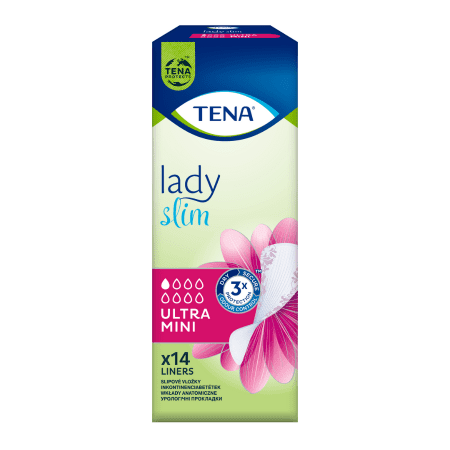 Špeciálne navrhnutá pre ženy s miernym oslabením močového mechúra, aby si mohli užívať svoje aktivity a nebáli sa zakašľať či kýchnuť. Táto hygienická vložka klasickej veľkosti uzamyká vlhkosť a zápach vo svojom vnútri a poskytuje diskrétnu ochranu pri miernom oslabení močového mechúra. Vložka TENA Lady Slim Ultra Mini je nielen jemná a hodvábna s atraktívnym dizajnom, ale aj s technológiou microPROTEX™, ktorá pomáha okamžite uzamykať zápach a vlhkosť. Vďaka tomu má vyššiu schopnosť absorpcie moču ako bežná hygienická vložka. Pretože na diskrétnosti záleží rovnako ako na bezpečnosti.