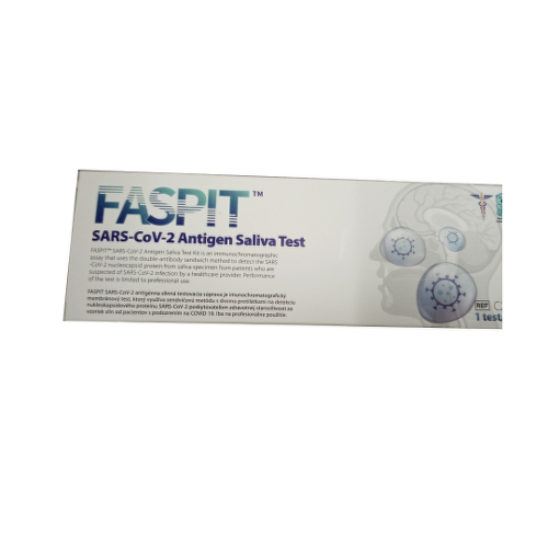 FASPIT SARS-CoV-2 antigénovy test zo slín je imunotest využívajúci sendvičovú metódu s dvo!itou protilátkou na detekciu nukleokapsidového proteínu SARS-CoV-2 zo vzorky slín od pacientov, u ktorych má poskytovateľ zdravotnej starostlivosti podozrenie na infekciu SARS-CoV-2. Vykonanie testu je obmedzené na profesionálne použitie.