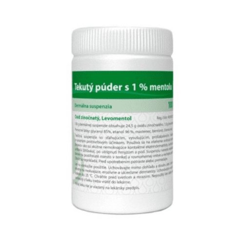 Tekutý púder s mentolom je určený na starostlivosť o pokožku pri prejavoch začervenania, lokálneho podráždenia, pocitoch svrbenia alebo po uštipnutí hmyzom. Svojím mierne vysušujúcim a sťahujúcim účinkom chráni pokožku pred nadmernou vlhkosťou a podráždením. Má chladivé účinky.